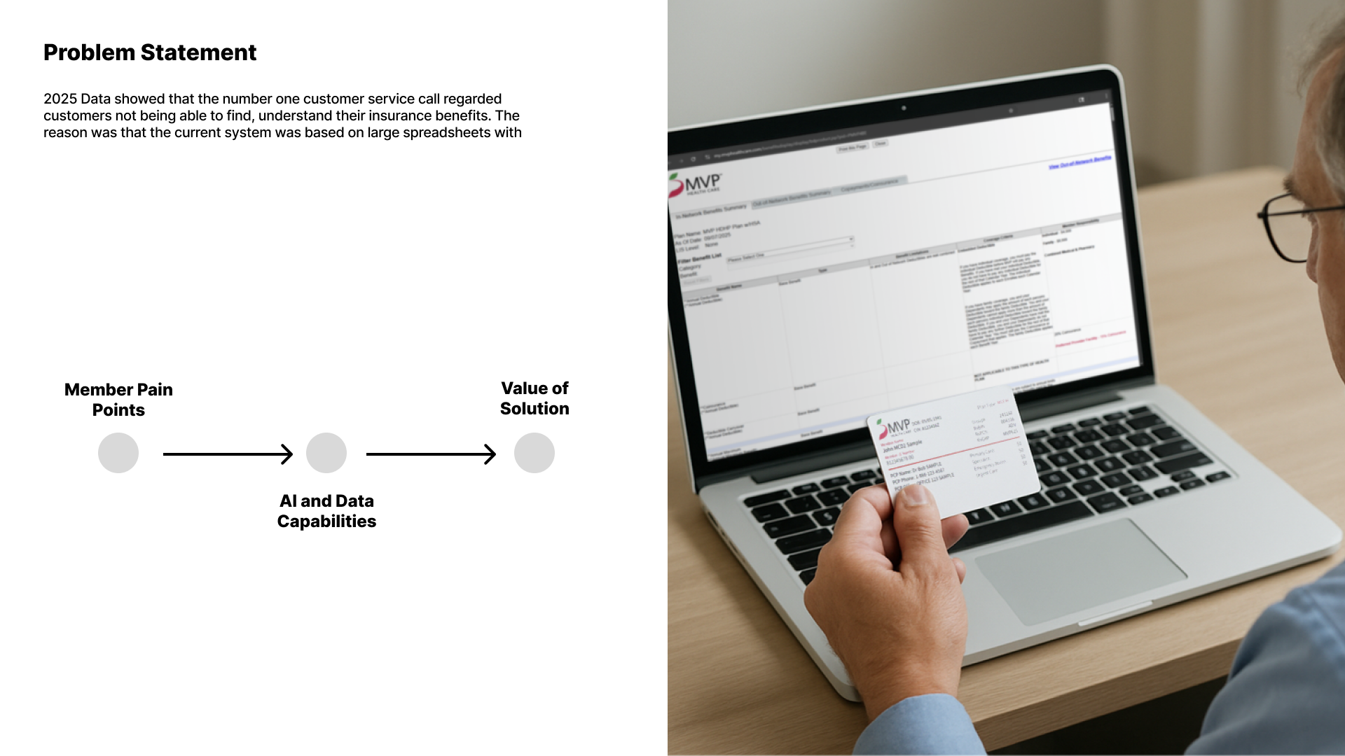Discovering this pain point, MVP looked to build their first in-house, agentic LLM that would allow members to self-service their benefit coverage.