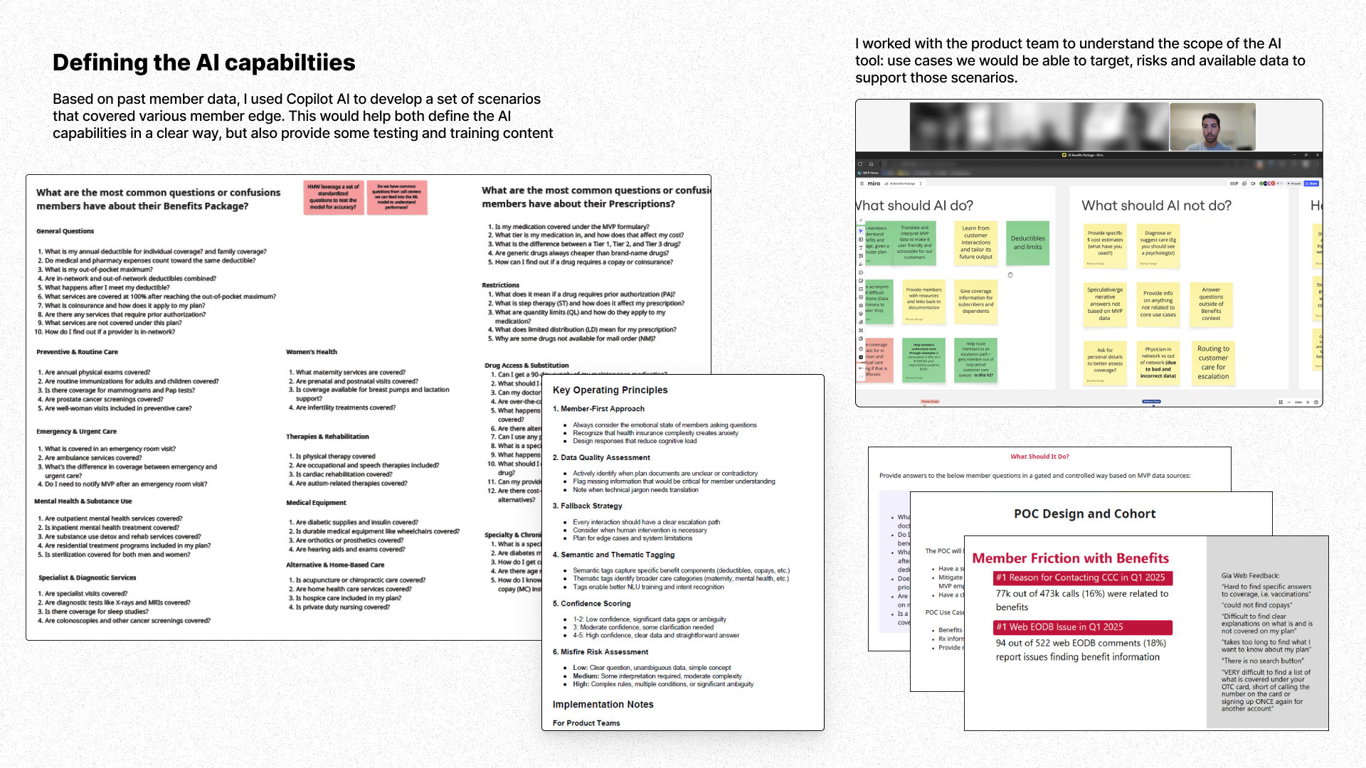 - Researched 100+ member pain points, established UX x AI principles, helped build evaluation guide, and design final prototype