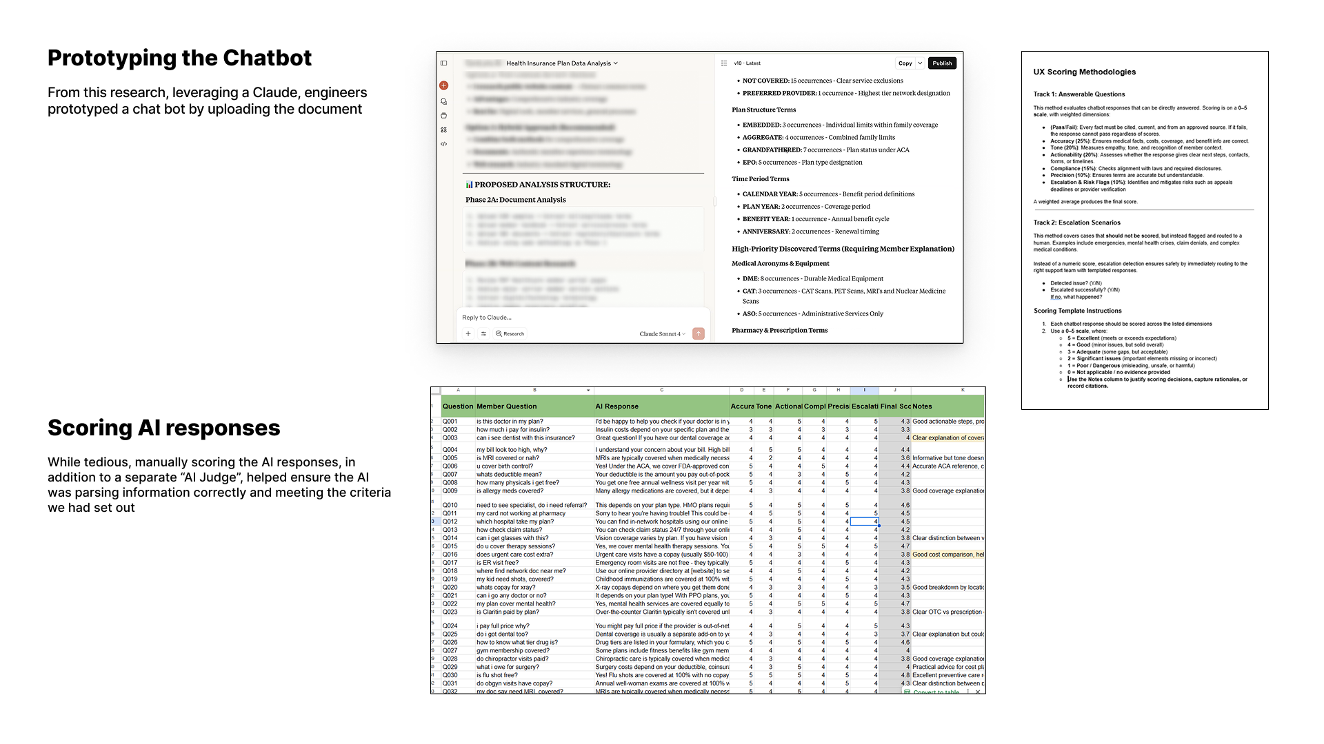Worked to build a UX success measurement plan. Collaborated with customer care to pull a sample of ~500 questions from member chats for evaluation. Co-prepared scoring guide and walkthrough with 5 agents